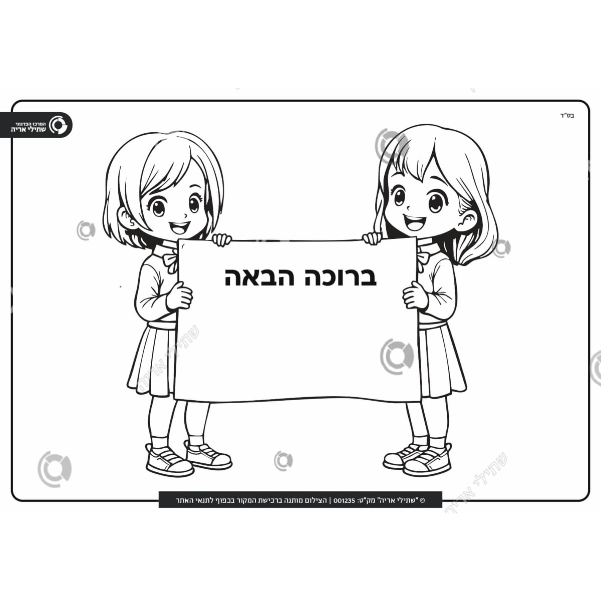 דף צביעה ברוכה הבאה לגן – ילדות עם שלט
