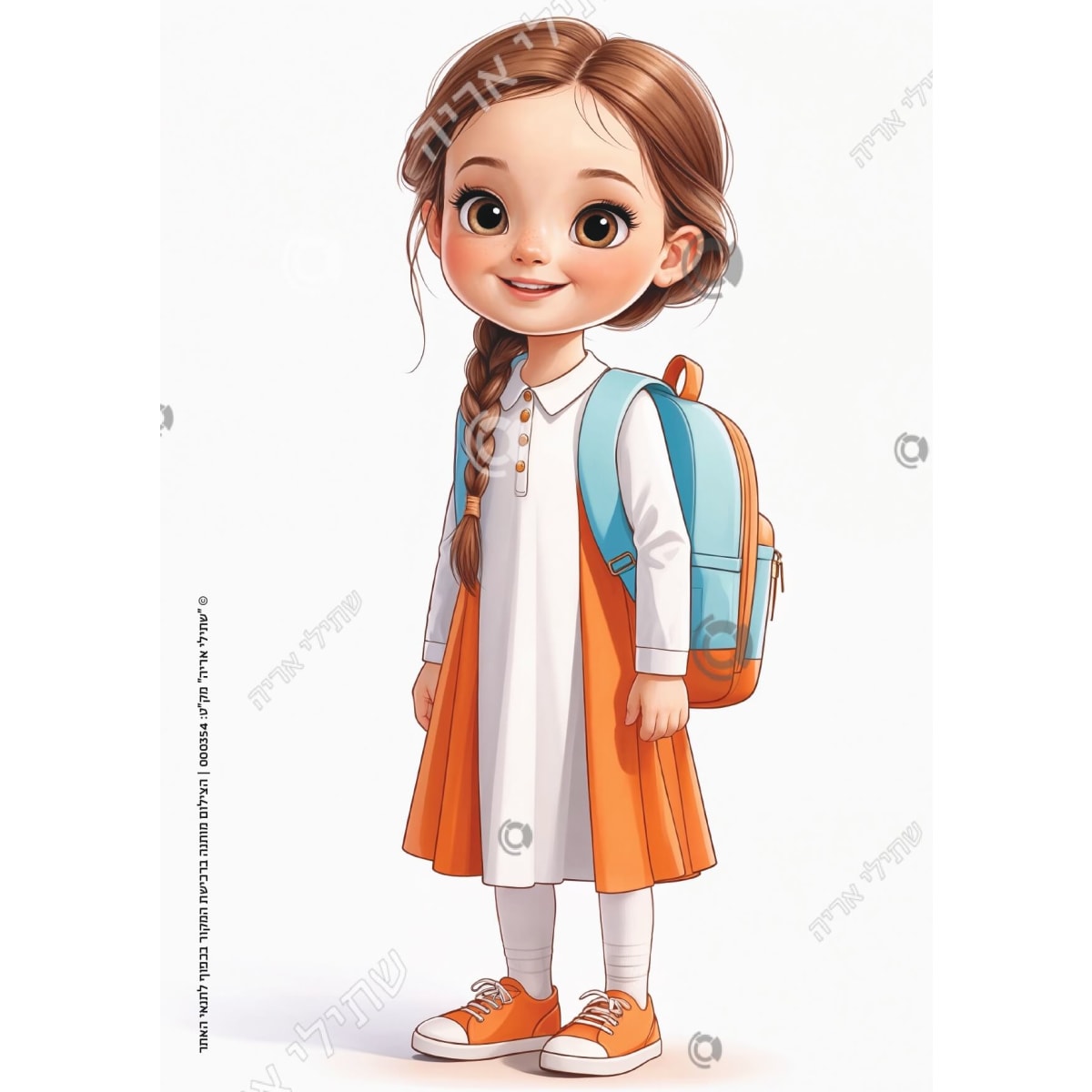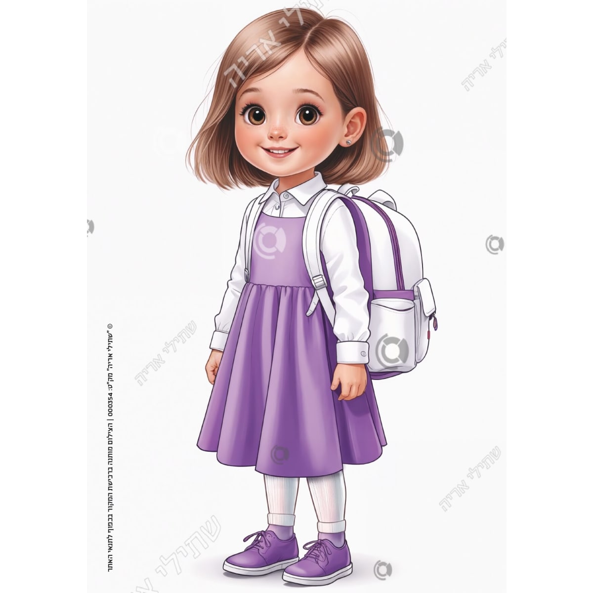 דמויות ילדות עם תיק גב. מתאים לתליה על הקיר בימים הראשונים של שנת הלימודים. מספר הדפים בקובץ: 9