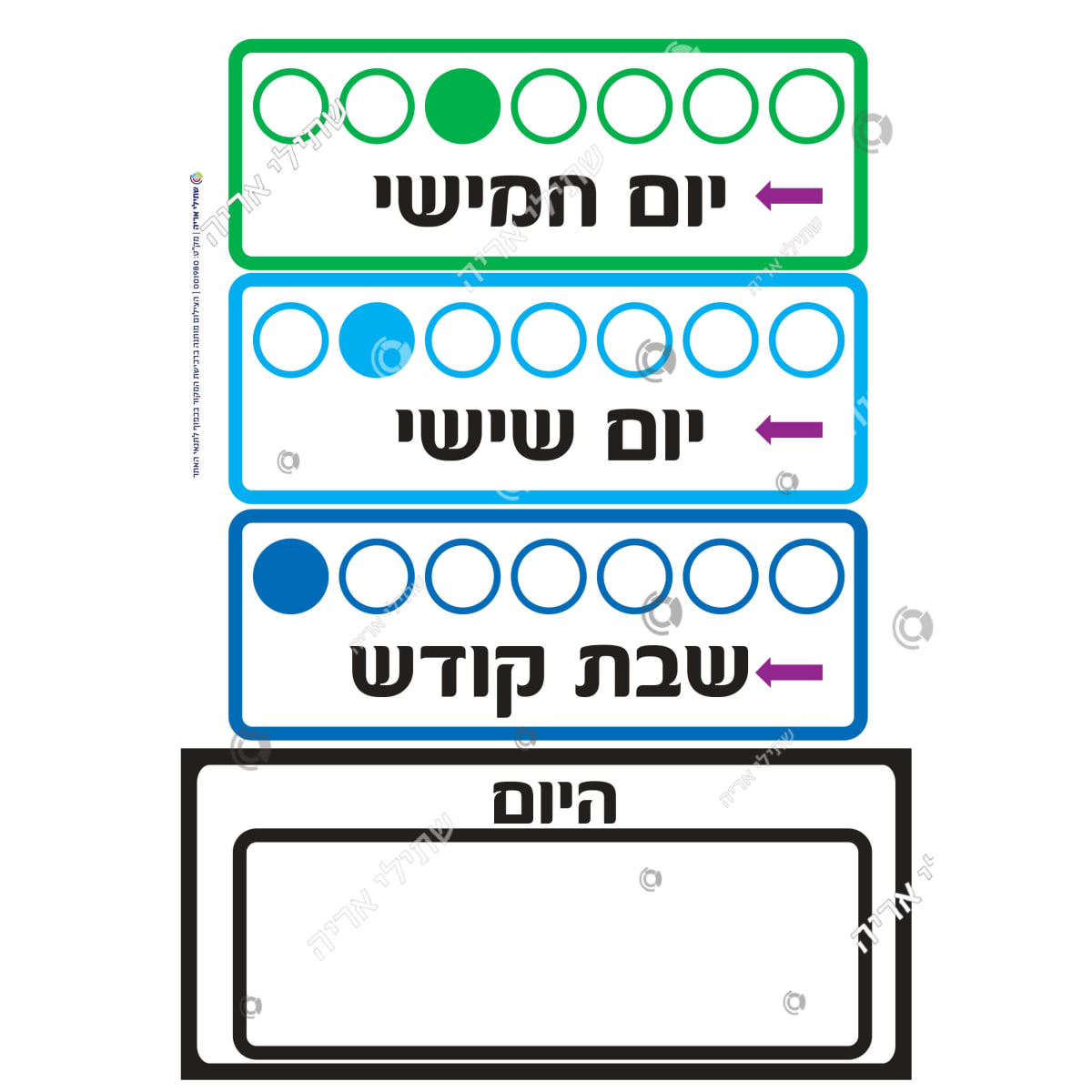 בית / המרכז הפדגוגי שתילי אריה / עזרי למידה / ימים בשבוע לחובה כיתוב ומספר