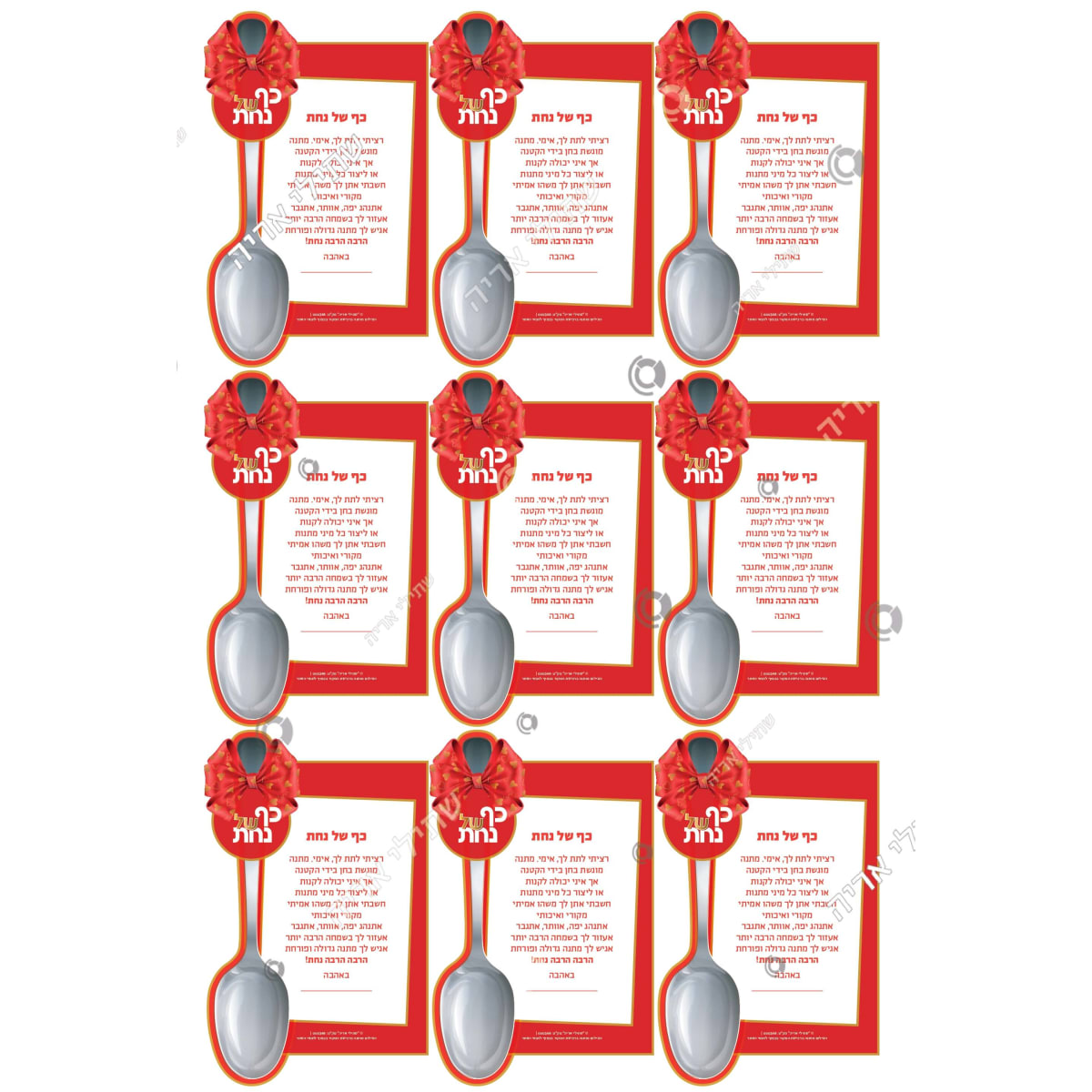 מזכרת מאספת הורים עם הקדשה לאמא בעיצוב כף חגיגית מספר הדפים בקובץ: 1