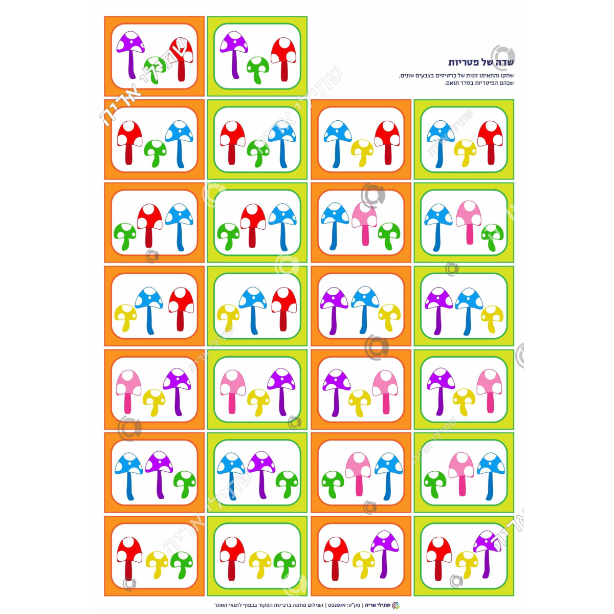 התאמת כרטיסים זהים-פטריות לפי גודל וצבע